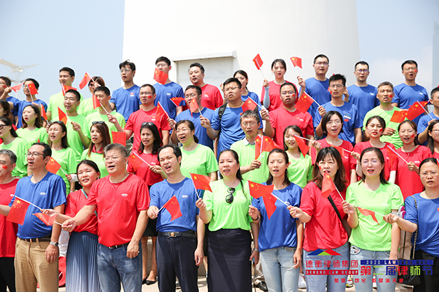 8月1日上午,藍(lán)天白云山海間,來自德衡律師集團(tuán)境內(nèi)外近50地各地辦公室的合伙人、律師員工代表,身著律師節(jié)定制T恤,在青島奧帆中心情人壩放飛自我,載歌載舞,同唱“我和我的祖國(guó)”。